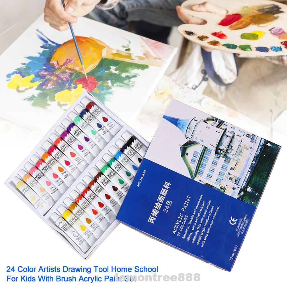 24 Color With Brush For Kids Water Based Beginners Drawing Tool Acrylic Paint Set | Shopee Singapore